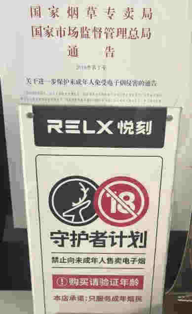 黃安店里擺放著禁止向未成年人銷售電子煙的招牌。圖源:時代財經