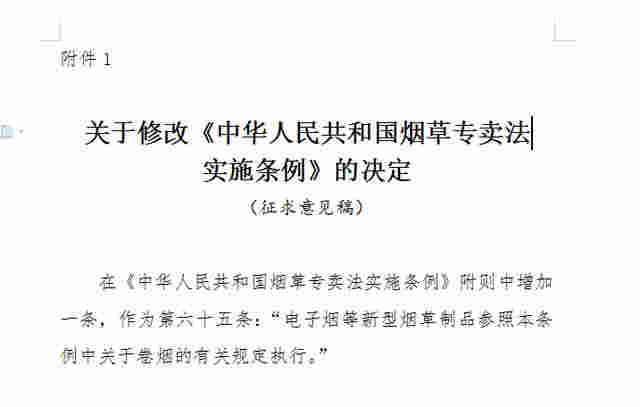 為貫徹落實黨中央、國務院決策部署,進一步加強對電子煙等新型煙草制品的監管,維護消費者合法權益,我們起草了《關于修改<中華人民共和國煙草專賣法實施條例>的決定(征求意見稿)》(以下簡稱《征求意見稿》)?,F說明如下: