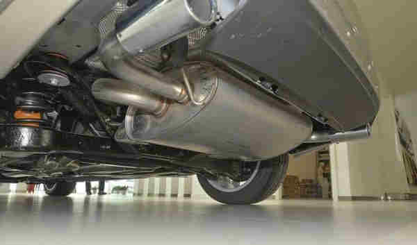 我們可以看到,排氣管道在接近末尾處的時候會有一個消聲器,消聲器內部是有結構的,不只是一個箱子那么簡單,如果設計不合理就會出現氣體殘留,殘留的氣體冷卻后會變成油和水,時間長了,消聲器就會上銹,然后損壞開始漏水,漏油!