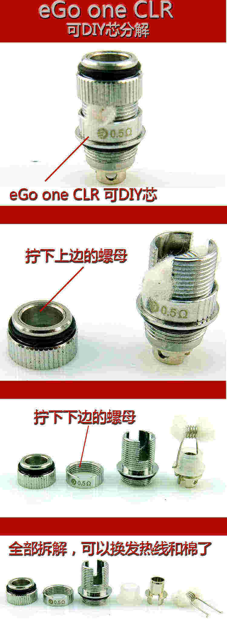廠家直銷ego one電子煙霧化器芯0.5歐姆1.0歐姆超大
