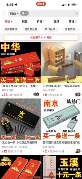 也就是說,拼多多上“眾花源養生館”們的邏輯是:“電商平臺不允許賣煙草制品,我雖然掛了正品中華煙的廣告,賣的卻不是真煙,所以就不違法”。