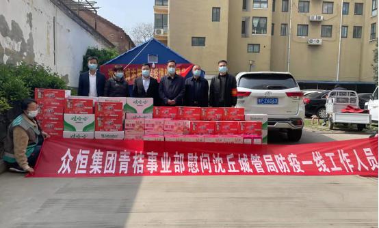 4月1日,周口市凱順汽車服務有限公司黨支部所屬眾恒集團青桔事業部前往沈丘縣城管局慰問奮戰在疫情防控一線工作人員。青桔事業部為沈丘縣城管局疫情防控一線工作人員送去40箱泡面、40箱面包、20箱礦泉水等共計4000元的慰問物資,讓奮戰在疫情防控一線的工作人員倍感溫暖與鼓舞,堅定了大家打贏這場疫情防控阻擊戰的信心。