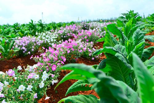 四月的云煙印象煙莊石林園格外迷人,天空湛藍,艷陽高照,花卉盛開。石林園坐落在全國聞名的紅花大金元品種的原產地、世界遺產5A級云南石林風景區內?!斑@里有適宜的土壤、光照,還有包括噴灌系統等精細化的種植技術,各種香料植物在這里和諧共生,茁壯生長?!蔽覀冋两谵挂虏莸姆枷阒?,微風拂面,沁人心脾,云煙印象煙莊石林園負責人神色自豪地說。