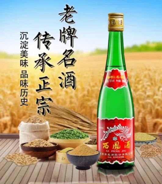 5、綠瓶西鳳酒:綠瓶高脖子鳳酒采用水、高粱、豌豆、大麥、小麥釀造,酒體具有鳳香型獨有的醇香典雅,甘潤凈爽,諸味諧調,尾凈悠長的特點。即清而不淡,濃而不釅,融清香、濃香優點于一體,不上頭,不干喉,回味愉快的特點被世人贊為三絕。