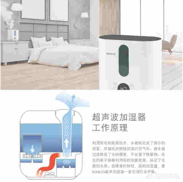 超聲波加濕器的原理是利用內置的霧化器高頻震蕩將水打散成細小的水珠,然后水霧被風扇吹出從而加濕空氣。這樣的霧氣其實是直徑很小的水珠,里面會還有原來水的一些成分,比如鈣鎂礦物質,所以比較容易產生白粉現象。購買這類超聲波加濕器的時候需要注意選擇有比較好的水處理技術的品牌,能減少孢粉產生。