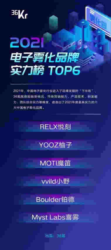 以下為上榜六家中國頭部電子霧化品牌: