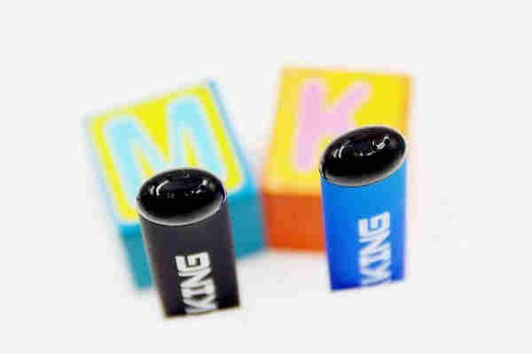 MK小嗨電子煙的外包裝采用方正的紙盒式包裝,因為是單體包裝,所以非常類似單條售賣的口香糖外形,包裝上除了帶有“MASKKING”和“JUST HIGH”的字樣外,還帶由于不同口味標準的英文字樣,同時,包裝盒也用不同的顏色區分在售的十種口味,而本次體驗的兩種口味為原味煙草和混合水果味。