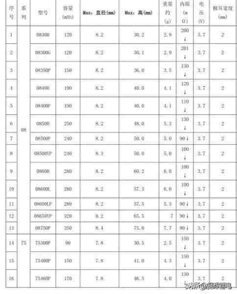 電子煙目前的市場還是很不錯的,3年以前被美國制裁以后,有2年時間,電子煙產品發展緩慢,那么電子煙用的那些型號的電池呢?請看下表: