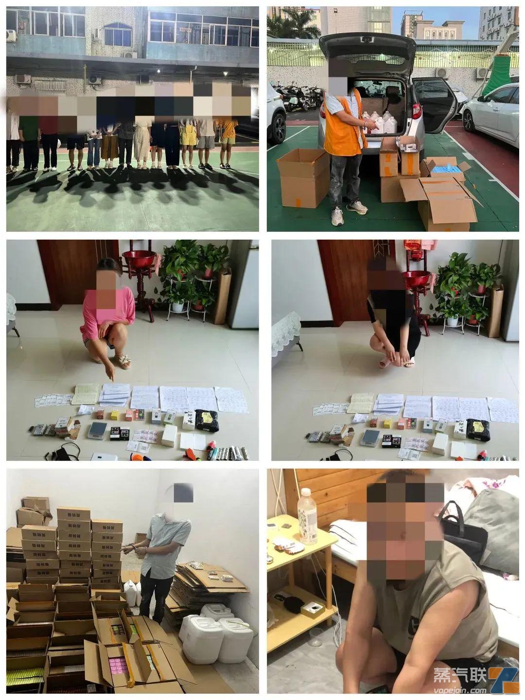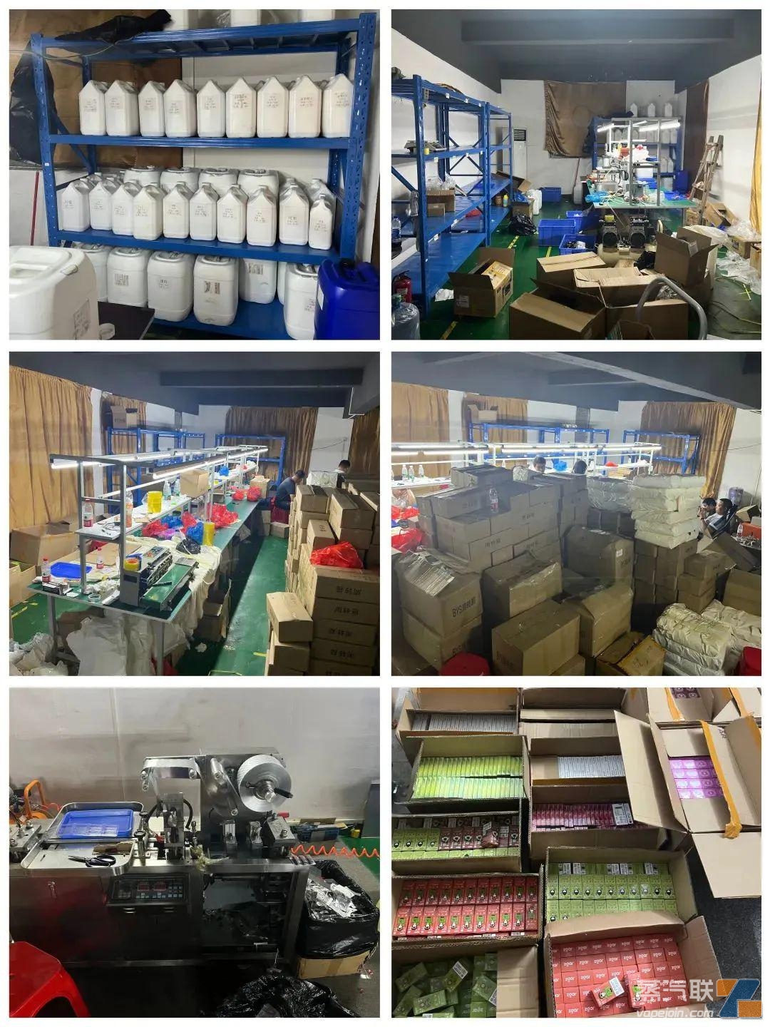 2023年8月15日晚,專案組在上級公安機關相關部門的大力支持下,于廣東、浙江、河北、山東等地開展集中統一收網行動,一舉抓獲犯罪嫌疑人29人,打掉正在生產的非法電子煙加工廠1處、倉儲分銷窩點4處,扣押生產設備9臺,現場查獲各類水果味電子煙煙彈6.4萬余個、煙桿868個、空煙彈1萬余個,一次性電子煙50套、煙油797.5公斤、包裝封紙13.7萬余片,當場查獲實物貨值300余萬元。實現了從生產、存儲到銷售終端等多環節的全鏈條生態打擊。