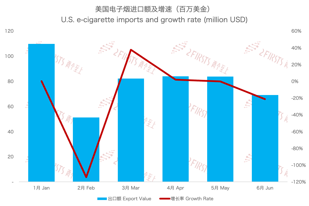 2023年6月美國電子煙進口數據分享。
