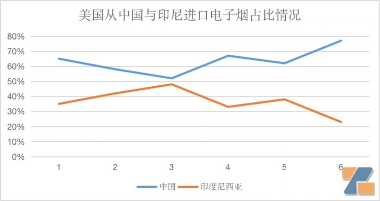 2023年6月,美國從中國、印尼進口電子煙的占比呈現明顯的相反趨勢,中國和印尼的“差距”似乎在不斷擴大。盡管目前中國仍然是美國電子煙進口的主要來源國,但隨著印尼的強勢崛起,未來中國是否還能保持這樣的優勢呢?