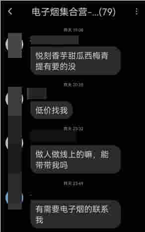 小胡表示,電子煙銷售有明確的地下網絡,通過會長,再到下級,一層一層遞進,每一層都會從中賺取差價,最后才到消費者。但是團隊之間彼此沒有聯系,只有進貨和出貨方有所接觸,他也不認識會長是誰,但是一些公用資料會在會員之中流傳。