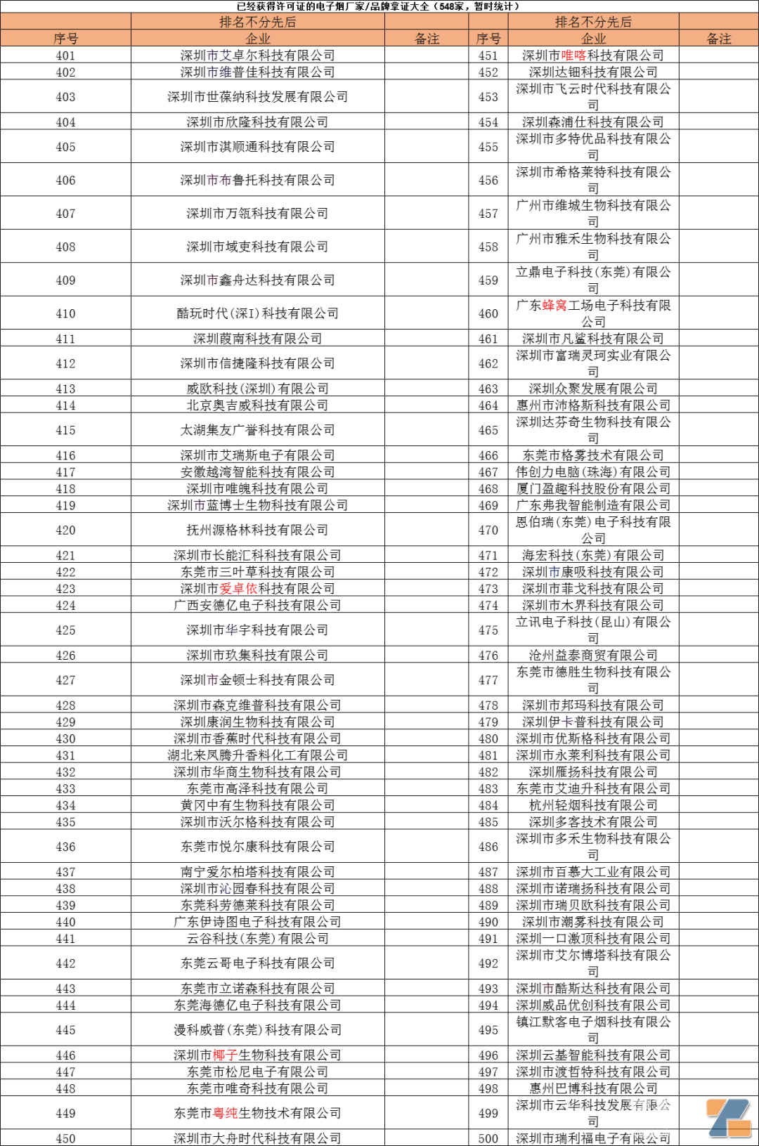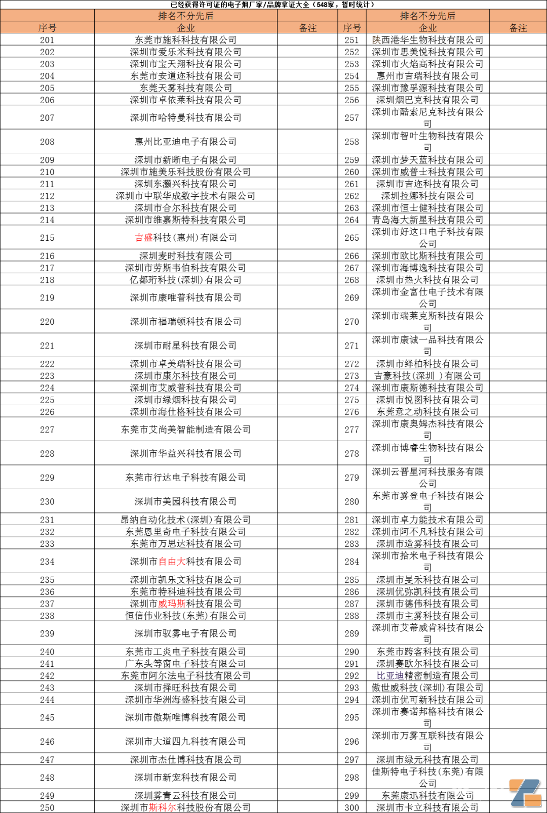 (廠家拿證名單暫時統計)
