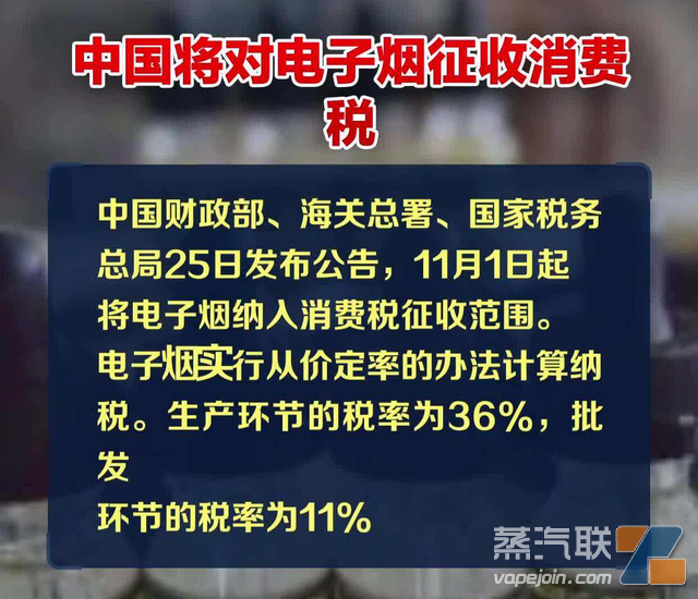10月25日,財政部、海關總署、稅務總局聯合發布關于對電子煙征收消費稅的公告,將電子煙納入消費稅征收范圍,在煙稅目下增設電子煙子目。