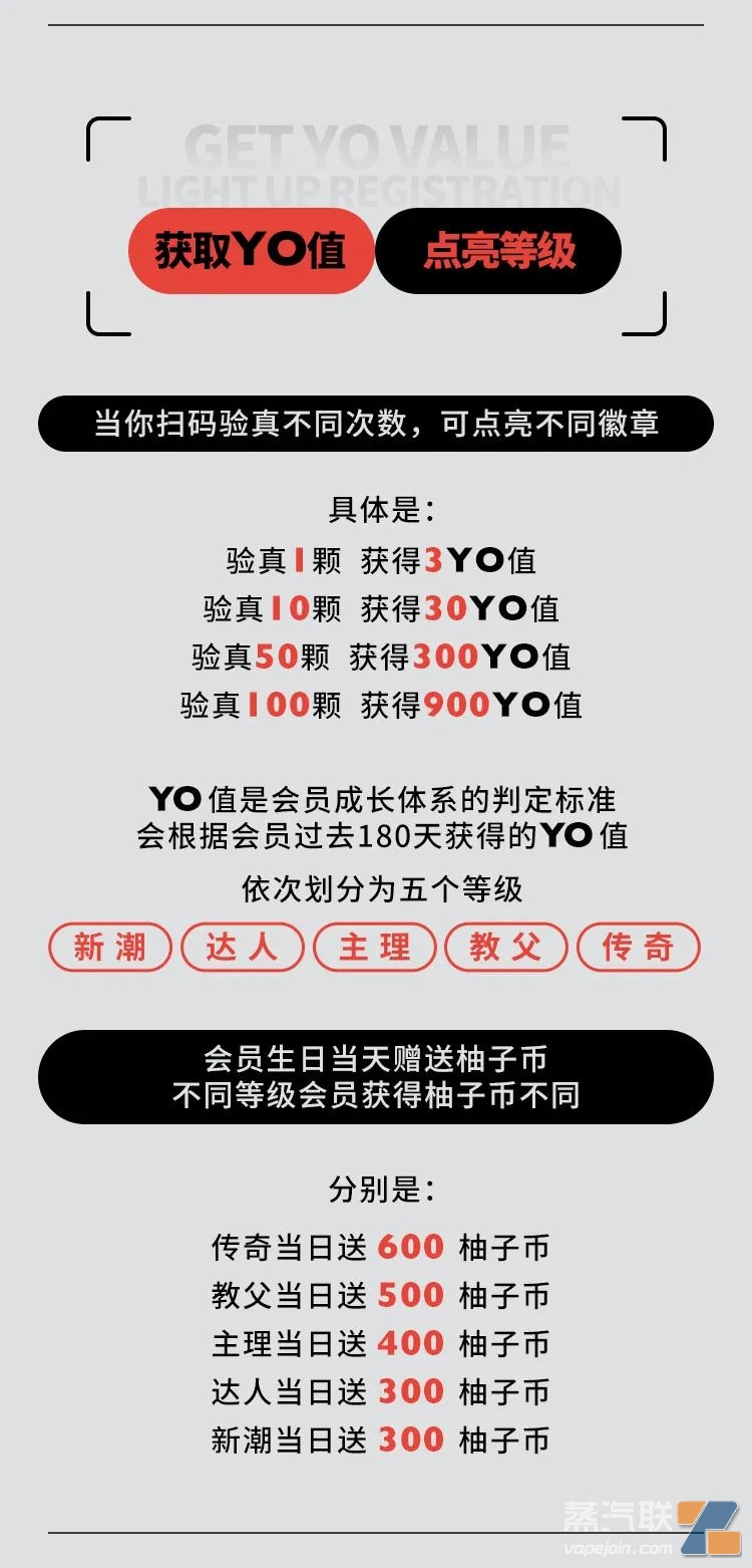 昨日,YOOZ柚子官方微信公眾號【柚子會員】發布了一篇內容“每一次升級與改變,都只為我們更好的遇見”,展示了目前線下電子煙門店新國標口味的使用、掃碼積分以及日常積分兌換好禮的場景。