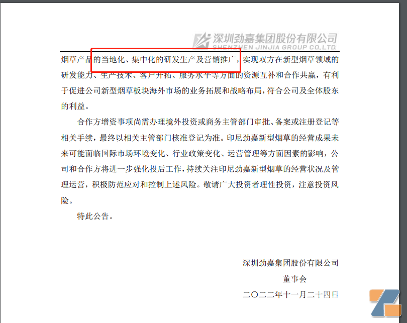 中東的世界杯,東南亞的電子煙! 正在激戰熱火的卡塔爾世界杯,中東的沙特逆勝冠軍球隊阿根廷,昨夜亞太的日本也逆勝德國,似乎亞太、中東一帶的新興發展,已經在不同的領域取得巨大進步。 而盡管本屆世界杯沒有東南亞球隊進場,但按照爆料,東南亞2大豪強泰國足球和越南足球將還有希望爭奪2026年世界杯的門票。 其實,東南亞、中東、亞太的新興還不止于足球,在電子霧化領域也開始大力興起。據聞業界一些人士透露,目前國內大多中小廠家,都非常熱衷開拓東南亞市場,因為這塊屬于新興市場,而且鄰國等運輸便利優勢,正在加碼推進。 今日發現,印尼“投資風”起,東南亞電子煙“生產”與“銷售”異國化。 一宗來自勁嘉股份超1000萬的“增資”印尼投資,在印尼設立子公司,名叫“印尼勁嘉新型煙草”(英文名稱:PT JINJIA NGP INDONESIA),設立3300平方米工廠,全面啟動當地生產與營銷化。 資料顯示,勁嘉股份的佳聚電子擬對海外子公司印尼勁嘉新型煙草進行增資印尼盾300億(約合人民幣1350萬元)。 (勁嘉股份的佳聚電子增資印尼子公司) 根據勁嘉股份的公告顯示,勁嘉股份公司全資子公司中華香港國際煙草集團有限公司(“中華煙草”)與佳信(香港)有限公司(“佳信香港”)共同以貨幣形式出資印尼盾200億(Rupiah,下同)(約合人民幣900萬元)在印度尼西亞共和國設立公司的全資子公司,名稱為勁嘉新型煙草(印尼)有限公司(英文名稱:PT JINJIA NGP INDONESIA,以下簡稱“印尼勁嘉新型煙草”)。而且新公司已經完成工商注冊登記手續。新公司會落在印尼廖內群島省巴淡市薩古隆區何升工業園內。 更令人關注的是,出資之外,還增資。中華煙草、佳信香港及勁嘉印尼新型煙草與公司下屬公司深圳佳聚電子技術有限公司(“佳聚電子”)簽署了《勁嘉新型煙草(印尼)有限公司增資協議》,佳聚電子擬在中國香港地區設立全資子公司香港佳聚生物科技有限公司(擬定名,以當地登記機構最終核準或備案為準,“佳聚生物”),佳聚生物擬對印尼勁嘉新型煙草增資印尼盾300億(約合人民幣1350萬元),中華煙草與佳信香港放棄此次增資事項的優先認繳出資權。至此,深圳佳聚電子也控制了“印尼勁嘉新型煙草”60%股權。 (出資和增資文件) 投資的方向指向生產和銷售。佳聚電子的全資子公司對印尼勁嘉新型煙草增資,利用印尼國際物流便利、產業法律政策相對完善、生產成本相對低廉等優勢,通過電子煙、加熱卷煙及煙具等新型煙草產品的當地化、集中化的研發生產及營銷推廣,實現雙方在新型煙草領域的研發能力、生產技術、客戶開拓、服務水平等方面的資源互補和合作共贏,有利于促進公司新型煙草板塊海外市場的業務拓展和戰略布局,符合公司及全體股東的利益。 (當地建廠和銷售) 查閱資料,佳聚電子煙,有研發和生產電子煙、加熱不燃燒煙具、加熱不燃燒本草煙彈和生生產設備的實力。 其今年還表示,佳聚電子的主營業務為自主品牌的HNB草本顆粒煙彈和自動化灌裝設備的研發、生產和銷售,無需申請電子煙生產許可證。 (草本HNB無需許可證?) (勁嘉工廠) 也獲得了煙支歐盟TPD的認證,馬來西亞進口牌照和煙草牌照等資質,客戶資源已經覆蓋日本、馬來西亞,以及英國、捷克等歐洲國家。而勁嘉股份旗下云南云爍科技、云普星河都已經拿到生產許可證。 可見,海外煙草投資風,特別在印尼已經開始。 東南亞的印尼、馬來西亞、越南、菲律賓是電子煙最開放地區。 而資料顯示,東南亞面積447萬平方公里,人口6.25億人,也是世界上人口比較稠密的地區之一。其中印尼人口超過2.7億、菲律賓人口超過1.1億,“當紅小生”越南人口也接近1億,這注定這些開放電子煙地區會有可能成為新型煙草電子煙獨角獸的沃土。這沃土不僅是經濟投資,還是消費市場的投資。同時印度尼西亞作為東南亞地區最大的電子煙集中地之一,這里匯聚了大約有200多家新型煙草制品的生產商與貿易商。 政策方面,印尼是最先開放電子煙的東南亞國家,目前對電子煙管控很松,也是第一個立法國家,且將7月18日定為"印尼電子煙節",對電子煙征收57%的消費稅。印尼雅加達電子煙展覽會也成為電子煙重要窗口。而且印尼電子煙產業處于弱監管狀態,也是東南亞唯一允許電視和媒體發布煙草廣告的國家,也是政府贊同和引進煙草投資的國家。 而且印尼是東南亞最大國家,也是人口世界前5個國家,國際物流便利、產業法律政策完善、生產成本相對低廉這些優勢,刺激電子煙廠商投資。 (印尼的位置) 印尼電子煙市場,2016年簡直是爆發式增長,2017年后放緩,主要是因為57%消費稅。 (印尼電子煙市場,中泰證券的數據) 菲律賓今年將電子煙管理規范,對煙草、薄荷口味之外的禁止,也以發證的方式開展電子煙。但對電子煙仍然十分友好,線上線下都可以銷售電子煙。菲律賓也是東南亞繼印尼又一個對電子煙立法的國家。 東南亞,作為電子煙新興地,也是煙草極度重的地區。大量的傳統煙民,水煙文化,正催化這一塊新型煙草的快速發展,也催化這一市場的投資機遇。 國內許多都加碼東南亞,如魔刻、Innokin旗下全新電子煙品牌OKINO、柚子、悅刻、魔笛等。像思摩爾、順灝股份,還有菲莫國際,都大量加碼東南亞市場。像今年思摩爾印尼工廠建在瑪瑯攝政區,是印度尼西亞第一家中印電子煙煙彈生產商,并且將由16條技術先進的生產線組成,每條