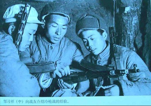 按照上級要求,當天夜里,鄒習祥在班里召開研究會,組織狙擊小組。為防止敵人火力報復,他們在陣地前構筑了許多假工事,故意開槍將敵人引出來。當敵人探頭尋找目標時,在翼側埋伏的狙擊手突然開火,把敵人消滅;當夜間敵人運糧、運彈之際,鄒習祥等狙擊手們潛伏到敵側后,在敵人必經的道路邊,突然開火,把敵人消滅。