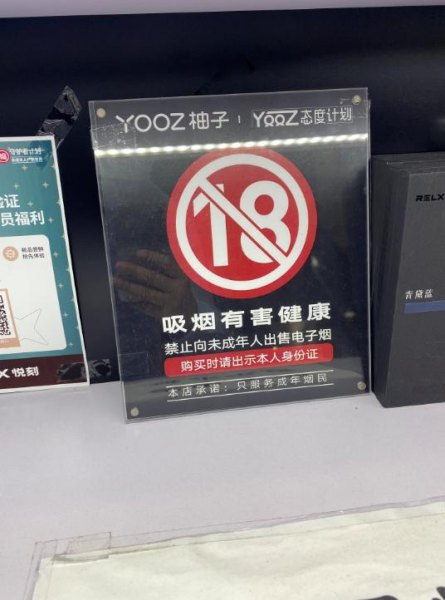 記者走訪了奧林匹克廣場的5家電子煙店。柚子電子煙店杜先生表示,“不會把電子煙賣給未成年人,這是經營者的紅線”。杜先生的店面很小,只有兩個電子煙產品展示柜。柜里整齊地擺著一排排的電子煙彈和煙具,煙彈包裝上,介紹了尼古丁含量,寫著“吸煙有害健康 未成年人禁止使用”警語,煙具包裝上,警示煙具搭配使用的霧化彈可能含有使人上癮的尼古丁,嚴禁未成年人使用。柜上的顯著位置,設置了“吸煙有害健康”標志,張貼了“禁止向未成年人售賣電子煙”標語。