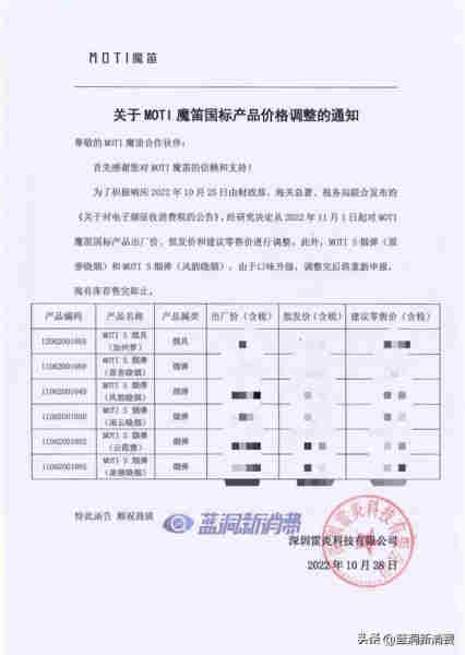 藍洞新消費報道,10月28日消息,魔笛店主透露,魔笛已經向店主發布了蓋章的加稅后調價信息。
